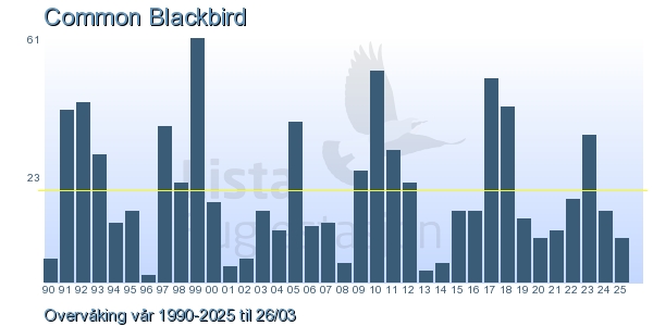 | 3 | Svarttrost | Common Blackbird | Turdus merula | 1 |