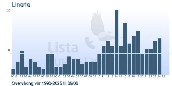 Her ser du resultater av merkeaktiviteten på Lista Fuglestasjon. Du kan velge om du vil ha Dagstall (detaljerte merketall for hver dag), Månedslister (totalsum hver dag for en måned), Sesongdata (status for sesongen), Årslister (artsoversikt for et år) eller Artsliste Lista fuglestasjon (Hele artslisten for merkede fugler på Lista Fuglestasjon).