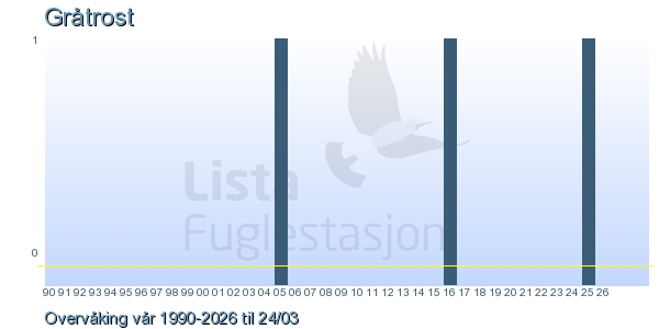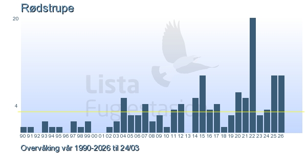 Her ser du resultater av merkeaktiviteten på Lista Fuglestasjon. Du kan velge om du vil ha Dagstall (detaljerte merketall for hver dag), Månedslister (totalsum hver dag for en måned), Sesongdata (status for sesongen), Årslister (artsoversikt for et år) eller Artsliste Lista fuglestasjon (Hele artslisten for merkede fugler på Lista Fuglestasjon).