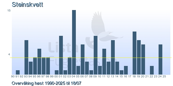 | 11 | Steinskvett | Northern Wheatear | Oenanthe oenanthe | 1 |
