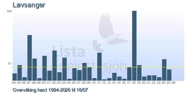 | 4 | Løvsanger | Willow Warbler | Phylloscopus trochilus | 5 |