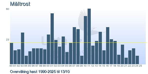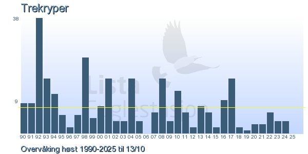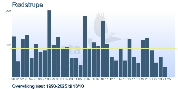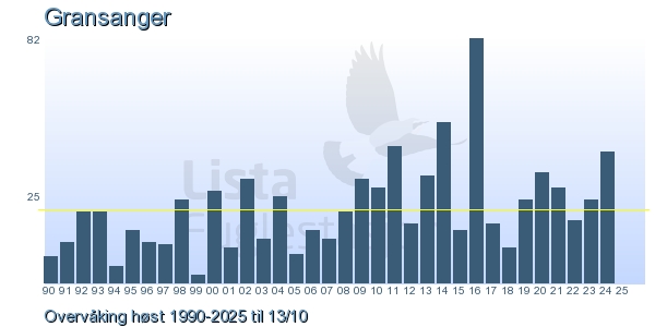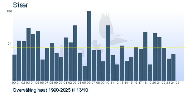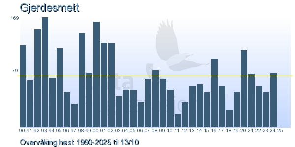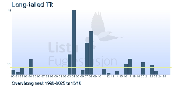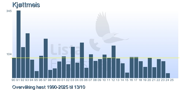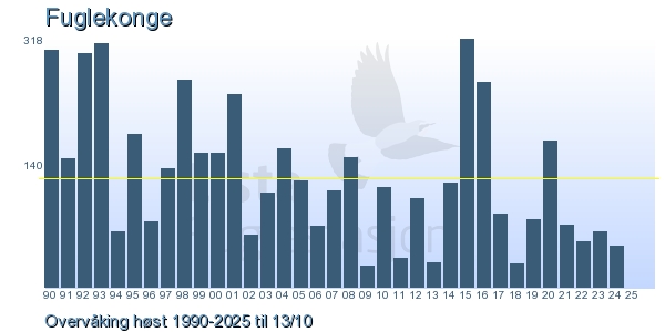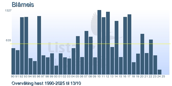 Her ser du resultater av merkeaktiviteten på Lista Fuglestasjon. Du kan velge om du vil ha Dagstall (detaljerte merketall for hver dag), Månedslister (totalsum hver dag for en måned), Sesongdata (status for sesongen), Årslister (artsoversikt for et år) eller Artsliste Lista fuglestasjon (Hele artslisten for merkede fugler på Lista Fuglestasjon).