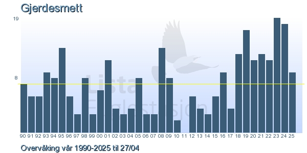 Her ser du resultater av merkeaktiviteten på Lista Fuglestasjon. Du kan velge om du vil ha Dagstall (detaljerte merketall for hver dag), Månedslister (totalsum hver dag for en måned), Sesongdata (status for sesongen), Årslister (artsoversikt for et år) eller Artsliste Lista fuglestasjon (Hele artslisten for merkede fugler på Lista Fuglestasjon).