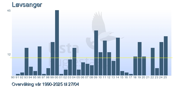 | 2 | Løvsanger | Willow Warbler | Phylloscopus trochilus | 5 |