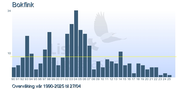 | 10 | Bokfink | Common Chaffinch | Fringilla coelebs | 1 |