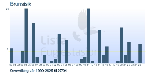 | 11 | Brunsisik | Lesser redpoll | Acanthis flammea cabaret | 1 |