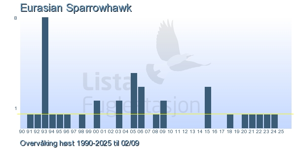| 1 | Spurvehauk | Eurasian Sparrowhawk | Accipiter nisus | 1 |