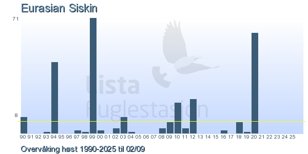 | 4 | Grønnsisik | Eurasian Siskin | Spinus spinus | 4 |