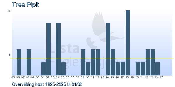 | 5 | Trepiplerke | Tree Pipit | Anthus trivialis | 1 |
