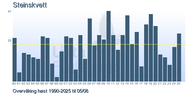 | 5 | Steinskvett | Northern Wheatear | Oenanthe oenanthe | 1 |