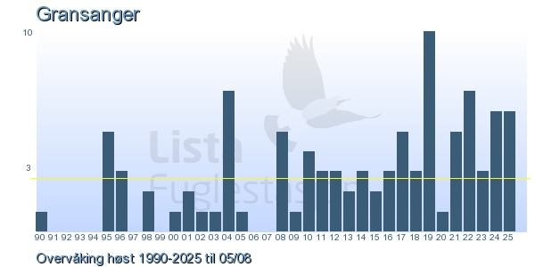 | 2 | Gransanger | Chiffchaff | Phylloscopus collybita | 1 |
