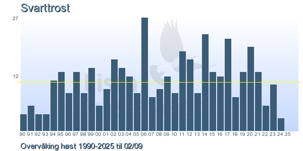 | 3 | Svarttrost | Common Blackbird | Turdus merula | 1 |