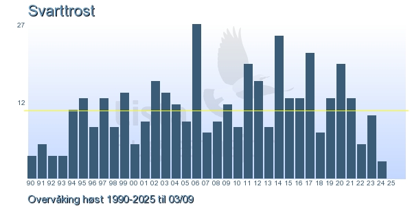 | 7 | Svarttrost | Common Blackbird | Turdus merula | 1 |