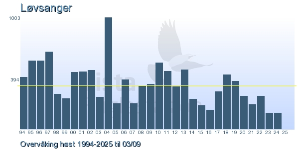 | 3 | Løvsanger | Willow Warbler | Phylloscopus trochilus | 1 |