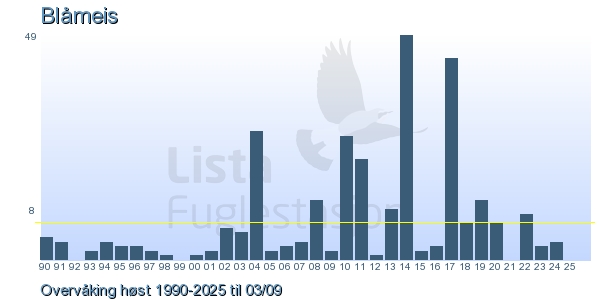 | 2 | Blåmeis | Blue Tit | Cyanistes caeruleus | 1 |