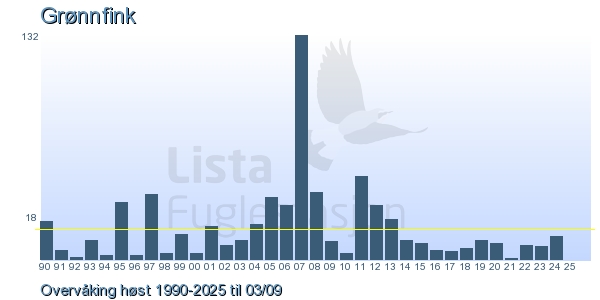 | 10 | Grønnfink | European Greenfinch | Chloris chloris | 1 |