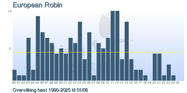 | 6 | Rødstrupe | European Robin | Erithacus rubecula | 1 |