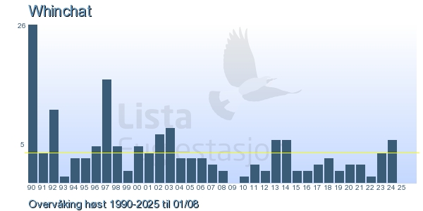 | 7 | Buskskvett | Whinchat | Saxicola rubetra | 1 |