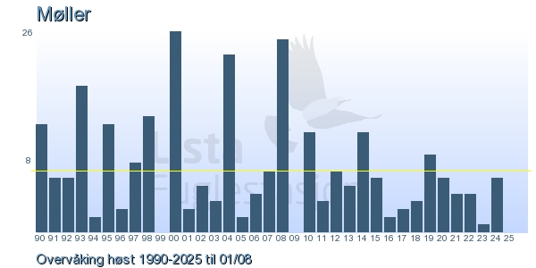 Her ser du resultater av merkeaktiviteten på Lista Fuglestasjon. Du kan velge om du vil ha Dagstall (detaljerte merketall for hver dag), Månedslister (totalsum hver dag for en måned), Sesongdata (status for sesongen), Årslister (artsoversikt for et år) eller Artsliste Lista fuglestasjon (Hele artslisten for merkede fugler på Lista Fuglestasjon).