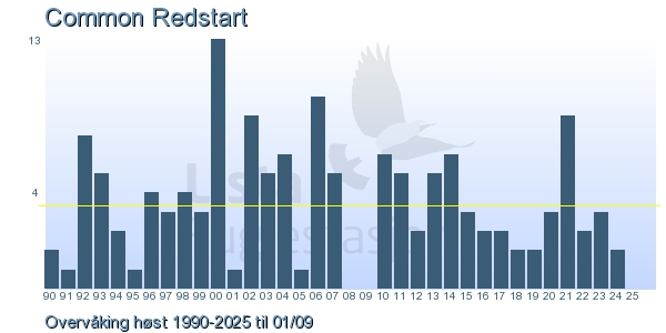 | 3 | Rødstjert | Common Redstart | Phoenicurus phoenicurus | 2 |