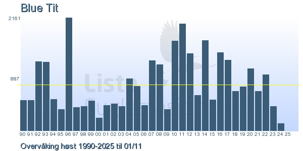 | 1 | Blåmeis | Blue Tit | Cyanistes caeruleus | 6 |
