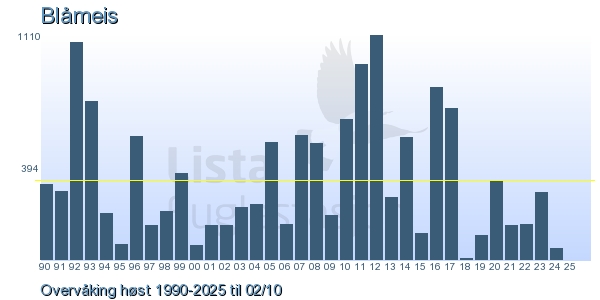 | 1 | Blåmeis | Blue Tit | Cyanistes caeruleus | 7 |