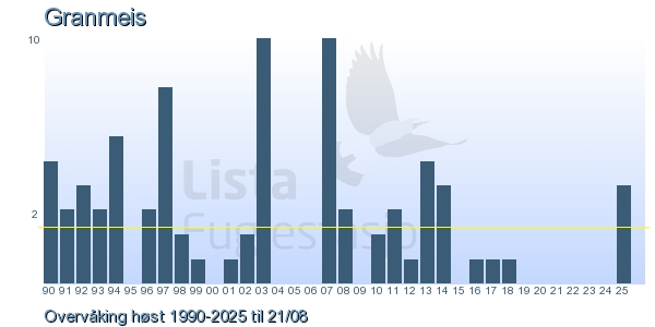 | 1 | Granmeis | Willow Tit | Poecile montanus | 4 |