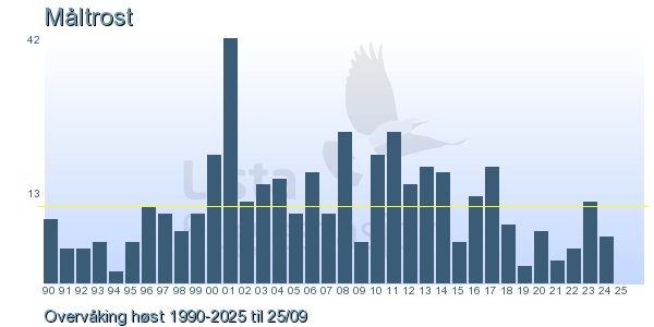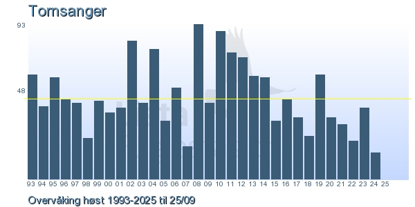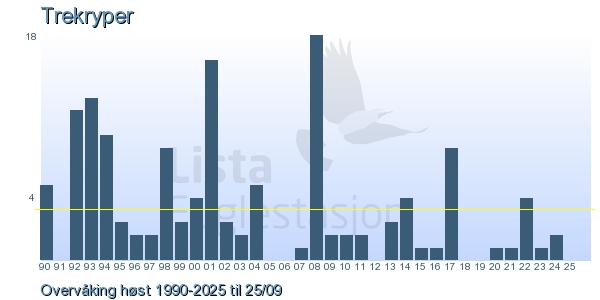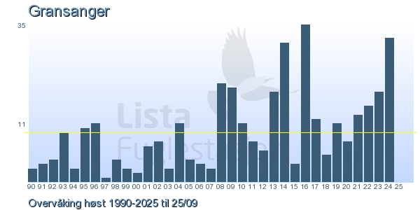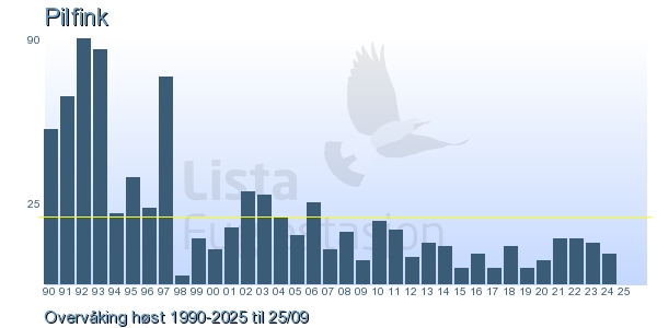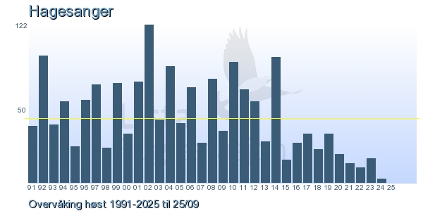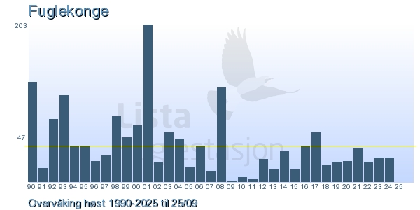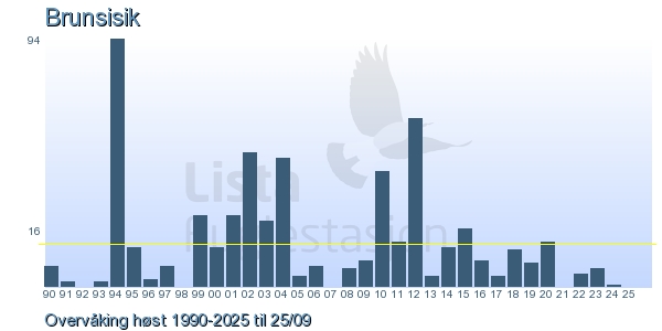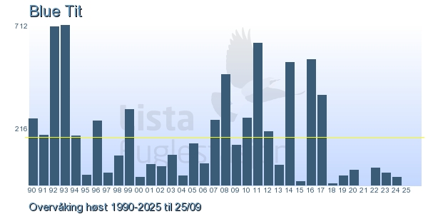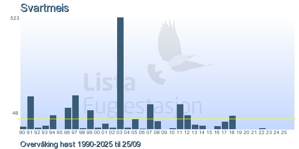 These pages contains the ringing log from Lista Bird Obs. There are several options; Daily log (detailed ringing log for any chosen day), Month log (totals for each day in a month), Season numbers (status for this season), Year list (list of species ringed for any chosen year) or Birdlist Lista Bird Obs. (complete list of species ringed).