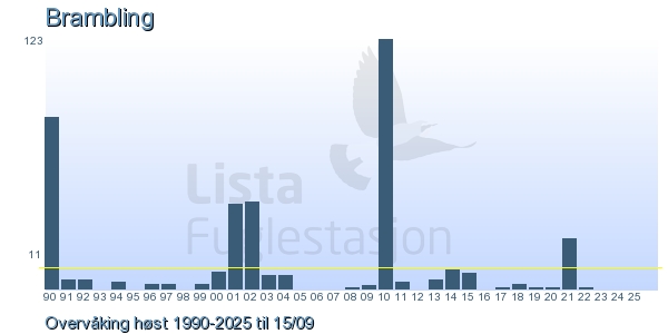 | 4 | Bjørkefink | Brambling | Fringilla montifringilla | 2 |