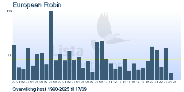 Her ser du resultater av merkeaktiviteten på Lista Fuglestasjon. Du kan velge om du vil ha Dagstall (detaljerte merketall for hver dag), Månedslister (totalsum hver dag for en måned), Sesongdata (status for sesongen), Årslister (artsoversikt for et år) eller Artsliste Lista fuglestasjon (Hele artslisten for merkede fugler på Lista Fuglestasjon).