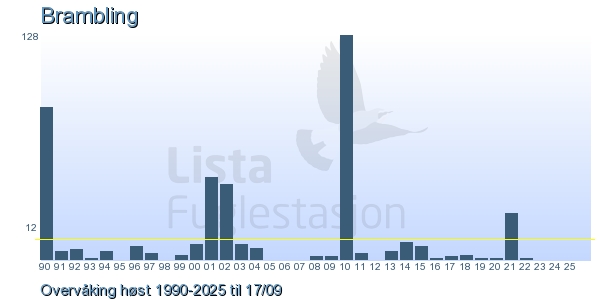 | 6 | Bjørkefink | Brambling | Fringilla montifringilla | 2 |