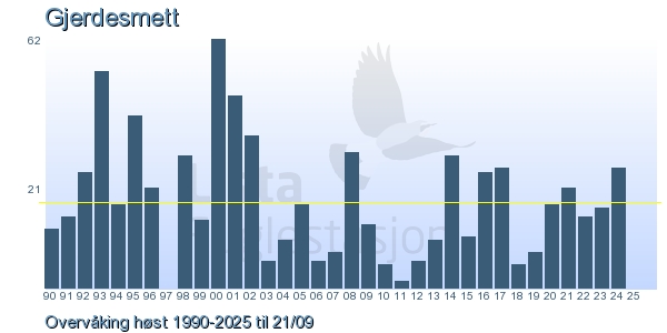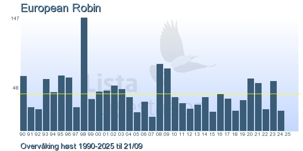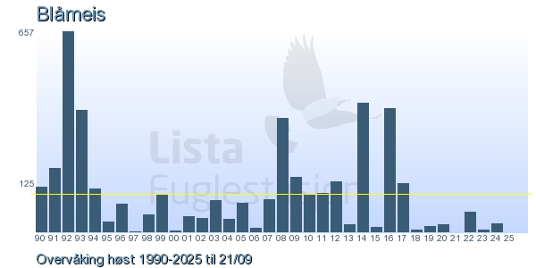 Her ser du resultater av merkeaktiviteten på Lista Fuglestasjon. Du kan velge om du vil ha Dagstall (detaljerte merketall for hver dag), Månedslister (totalsum hver dag for en måned), Sesongdata (status for sesongen), Årslister (artsoversikt for et år) eller Artsliste Lista fuglestasjon (Hele artslisten for merkede fugler på Lista Fuglestasjon).