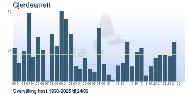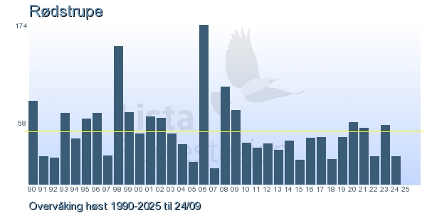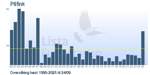 Her ser du resultater av merkeaktiviteten på Lista Fuglestasjon. Du kan velge om du vil ha Dagstall (detaljerte merketall for hver dag), Månedslister (totalsum hver dag for en måned), Sesongdata (status for sesongen), Årslister (artsoversikt for et år) eller Artsliste Lista fuglestasjon (Hele artslisten for merkede fugler på Lista Fuglestasjon).