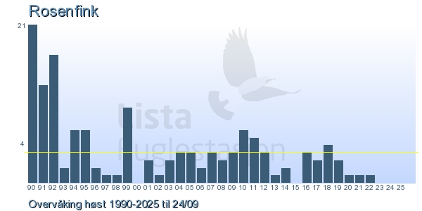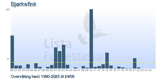 | 16 | Bjørkefink | Brambling | Fringilla montifringilla | 53 |