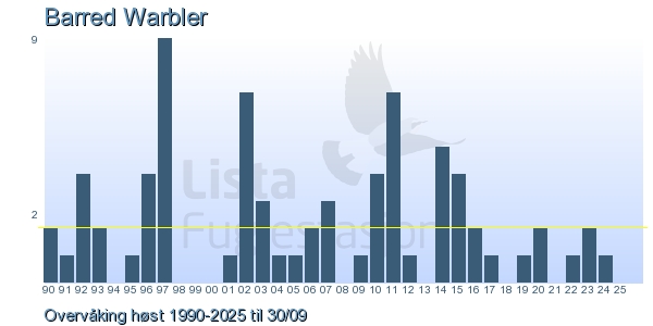 | 1 | Hauksanger | Barred Warbler | Curruca nisoria | 1 |