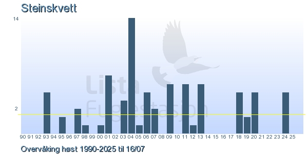 | 5 | Steinskvett | Northern Wheatear | Oenanthe oenanthe | 1 |