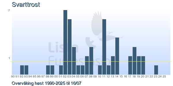| 4 | Svarttrost | Common Blackbird | Turdus merula | 1 |