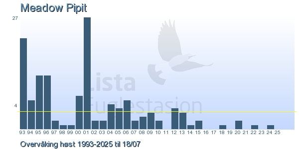 | 8 | Heipiplerke | Meadow Pipit | Anthus pratensis | 4 |