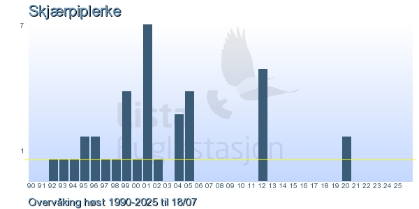 | 9 | Skjærpiplerke | European Rock Pipit | Anthus petrosus | 4 |