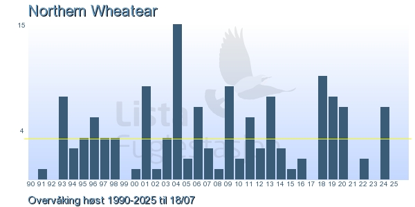 | 6 | Steinskvett | Northern Wheatear | Oenanthe oenanthe | 1 |