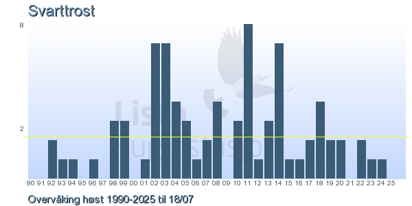 | 3 | Svarttrost | Common Blackbird | Turdus merula | 2 |