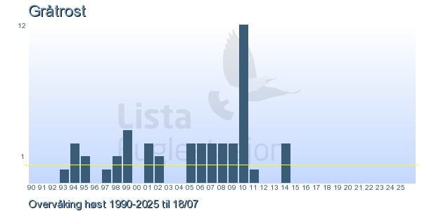 | 4 | Gråtrost | Fieldfare | Turdus pilaris | 3 |