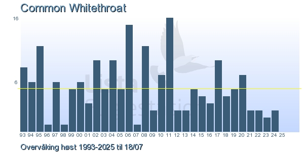 | 1 | Tornsanger | Common Whitethroat | Curruca communis | 3 |