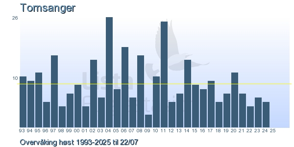 | 1 | Løvsanger | Willow Warbler | Phylloscopus trochilus | 6 |