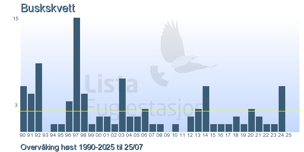 | 4 | Buskskvett | Whinchat | Saxicola rubetra | 1 |