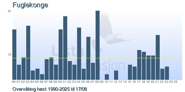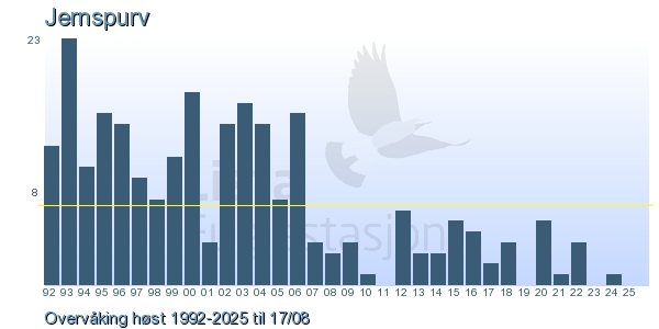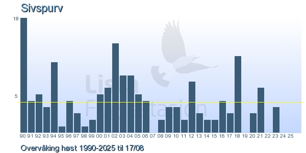 These pages contains the ringing log from Lista Bird Obs. There are several options; Daily log (detailed ringing log for any chosen day), Month log (totals for each day in a month), Season numbers (status for this season), Year list (list of species ringed for any chosen year) or Birdlist Lista Bird Obs. (complete list of species ringed).