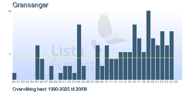 | 2 | Gransanger | Chiffchaff | Phylloscopus collybita | 1 |