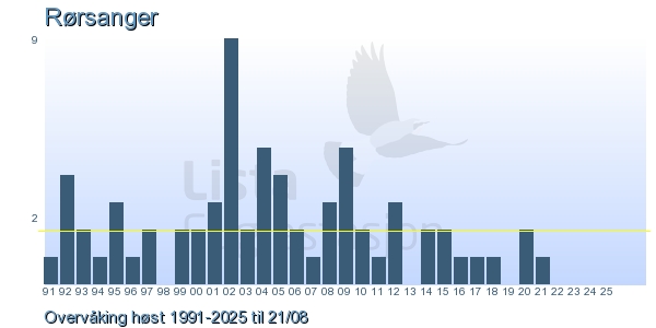 | 4 | Rørsanger | European Reed Warbler | Acrocephalus scirpaceus | 2 |