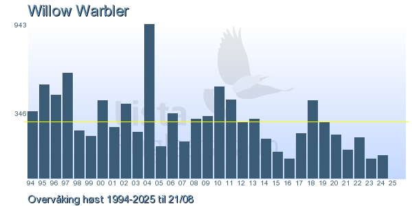 | 3 | Løvsanger | Willow Warbler | Phylloscopus trochilus | 8 |