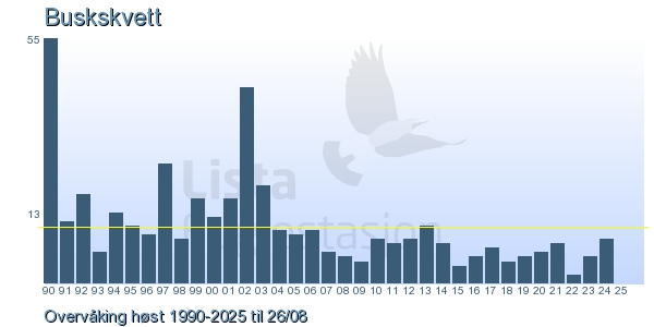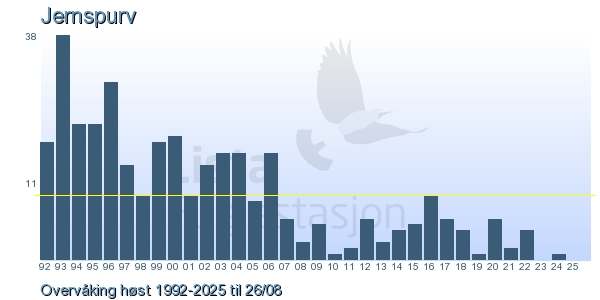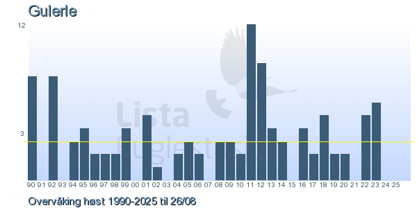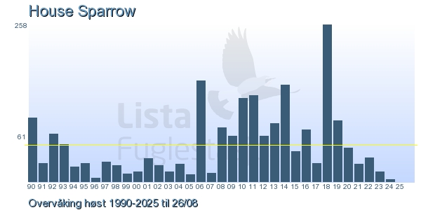 Her ser du resultater av merkeaktiviteten på Lista Fuglestasjon. Du kan velge om du vil ha Dagstall (detaljerte merketall for hver dag), Månedslister (totalsum hver dag for en måned), Sesongdata (status for sesongen), Årslister (artsoversikt for et år) eller Artsliste Lista fuglestasjon (Hele artslisten for merkede fugler på Lista Fuglestasjon).